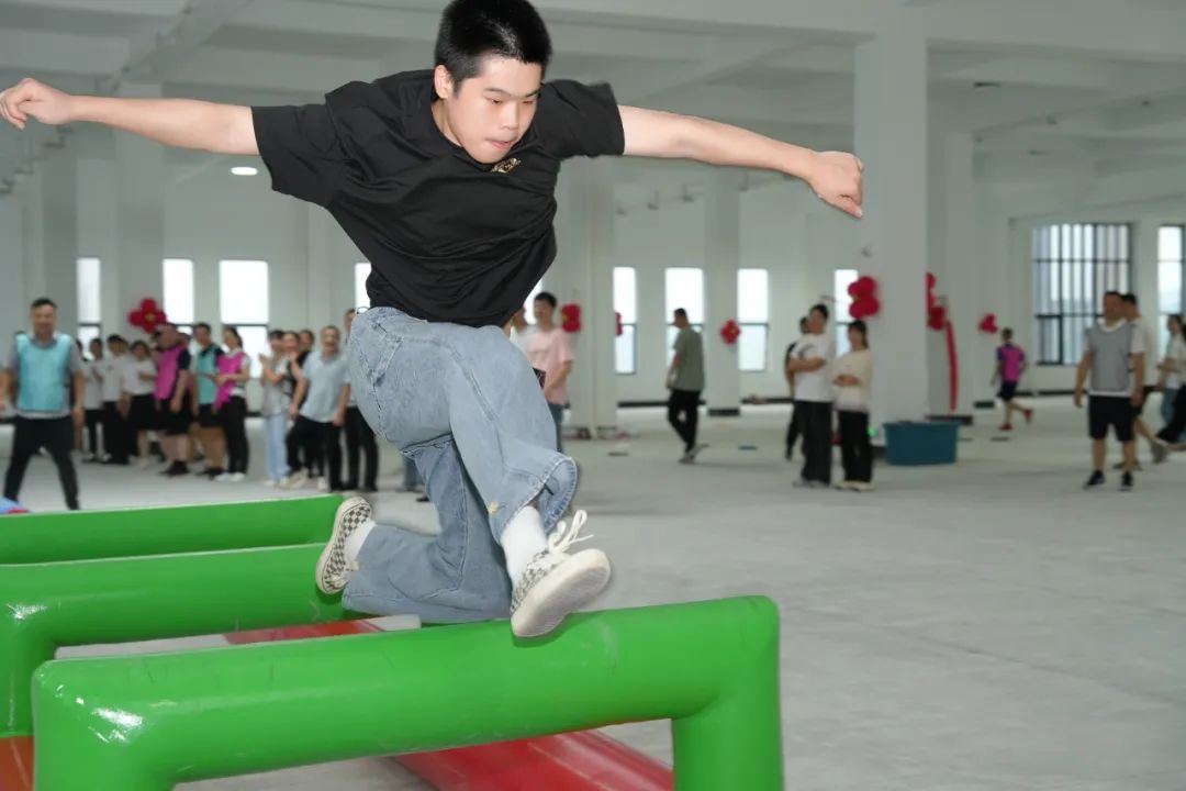 在教練帶領大家進行充分熱身之后,團建活動正式拉開序幕,6支團隊分別起了各具特色的隊名與振奮人心的口號,在“超級障礙賽”、“飛盤嘉年華”與“蒙眼博弈”等前三個競技游戲中,隊友奮力拼搏、相互團結協作,用耐心和智慧出色完成每個項目,對手之前本著“友誼第一、比賽第二”的體育精神,相互尊重,在充滿挑戰性和趣味性的活動中賽出了風格,賽出了水平。在最后一個“動力圈”游戲項目中所有人團結協作、配合默契,勇于挑戰的精神風貌充分展現了湘能楚天大家庭團結向上、銳意進取的昂揚斗志。整個活動現場氣氛活躍而又熱烈,每個人在揮灑汗水的同時,也享受了趣味運動帶來的樂趣,提升團隊的凝聚力和集體向心力的同時營造了溫馨、愉悅的企業文化氛圍,進而增強了員工對企業的歸屬感。我們在一起,就會了不起。<<<向左滑動欣賞更多精彩瞬間...